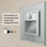 Подсветка лестницы и пола Livolo светит слабым мягким светом. Мощность светодиода 0.35Ватт. Датчик реагирует на движение и включается только в тёмное время суток. Время работы после срабатывания 40 секунд. Устанавливается в круглые подрозетники с рамками Livolo для розеток. Рамка из калёного стекла.