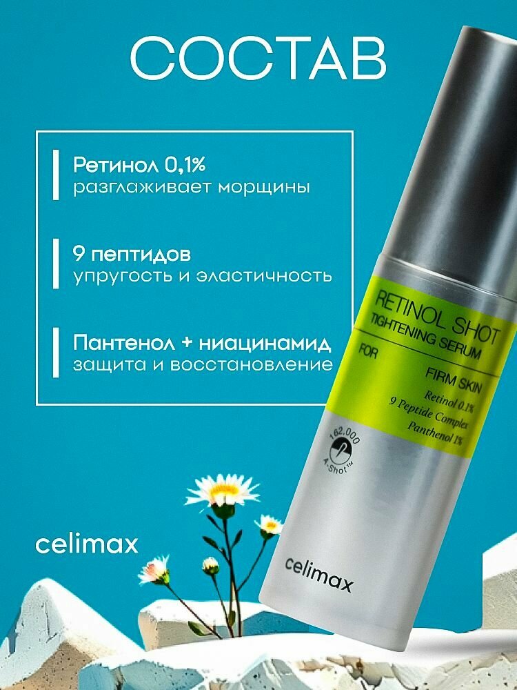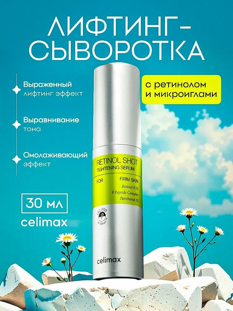 Сыворотка для лица Celimax Vita A Retinol Shot, с ретинолом, 30мл: сравнение цен, характеристики, фото, актуальное наличие и цены.