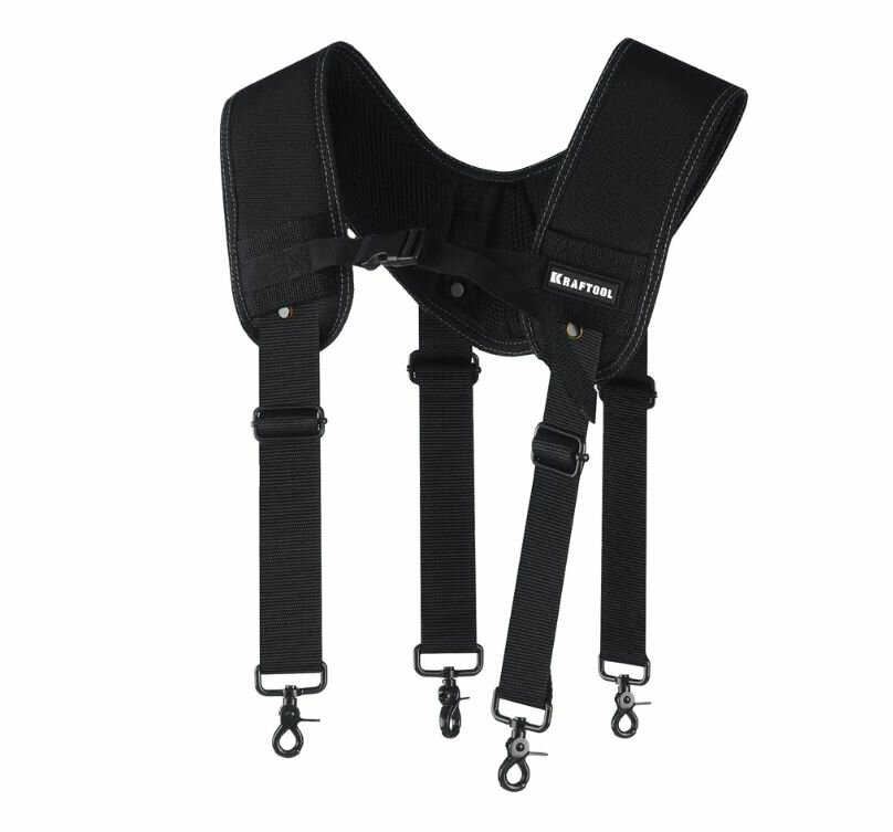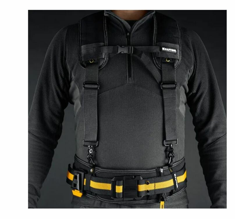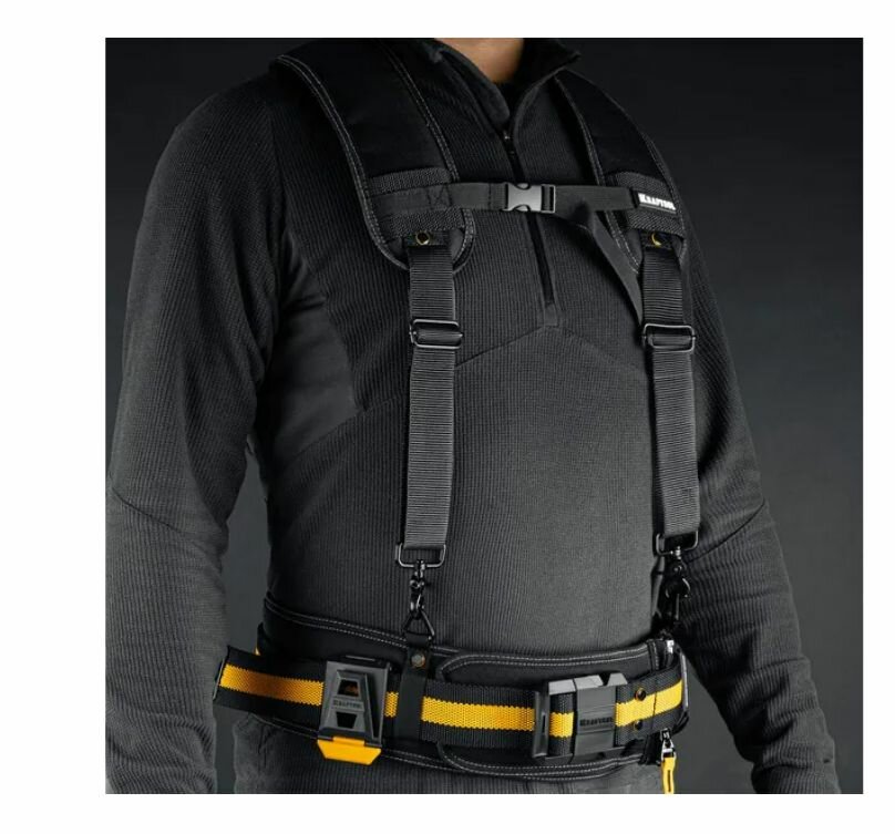 Профессиональные пояса и сумки KRAFTOOL KRAFTBUILT с системой быстросъёмного крепежа предлагают уникальную возможность организации рабочего процесса. Используйте только только тот инструмент, который нужен именно сейчас. Подтяжки регулируемые KRAFTOOL 38765 предназначены для фиксации пояса монтажника. Регулируемые по длине. 4 точки крепления делают их совместимым практически с любым ремнем. Широкие наплечные ремни равномерно распределяют вес инструментов. Выполнены из высокопрочного полиэстера 1680D. Внимание! Информация о технических характеристиках, комплекте поставки, стране изготовления, внешнем виде и цвете товара носит справочный характер и основывается на последних доступных к моменту публикации сведениях. В зависимости от партии товара выпускаемой заводом производителем, внешний вид изделия (цвет), может отличаться от фото. Несовпадение внешнего вида и комплектности реального товара с фотографиями и описанием не является показателем ненадлежащего качества товара!