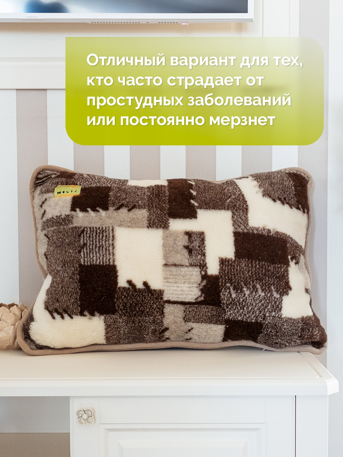 У подушки размера 40х40 молния на чехле отсутствует. Подушка 40х40 из натуральной овечьей шерсти считается одной из самых мягких и уютных. Подушки 40х40 с наволочкой белого цвета из 100% шерсти мериноса станет отличным дополнением спальни. Мягкая пушистая подушка благоприятно влияет на здоровье. Такая подушка овечья шерсть подарит здоровый и крепкий сон. Подушка 40x40 с ворсом отлично пропускают воздух и впитывают влагу. Поэтому, на ней комфортно спать в любое время года: летом, осенью, зимой и весной. Также, подушка для сна 40/40 обладает массажным эффектом. Ворсинки шерсти нежно воздествуют на голову и шею, помогая быстрее расслабиться. Маленькая подушка способствуют снятию психоэмоционального перенапряжения, улучшают микроциркуляцию крови и благоприятно влияют на здоровье (все благодаря свойствам натуральной шерсти). Отличный вариант для тех, кто страдает простудными заболеваниями и постоянно мерзнет во время сна. Удобная шерстяная подушка отлично подойдет для детей с неустоявшейся терморегуляцией тела. Подушка овечья шерсть придет к вам в сумке-чехле. Такое теплое, натуральное изделие станет отличным подарком для близких людей: мамы, папы, бабушки, дедушки, мужа, жены, брата, сестры, сына, дочери. Можно взять в подарок ( маме, папе, дедушке, бабушке ) подарок на свадьбу молодоженам или порадовать себя. P.S. Мягкая детская подушка 40 на 40 выполнена из шерсти, наполнитель комфорель.