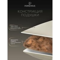 Подушка CAMEL. Состав чехла: 100% органический хлопок тик Biodynamic Cotton 233 ТС; наполнитель: верблюжья шерсть — 100%. Подушка с наполнителем из верблюжьей шерсти восстанавливает терморегуляцию: в теплую погоду на подушке не жарко, а в холодную — тепло. Она не накапливает статику, а значит — не притягивает пыль, легко впитывает влагу и быстро сохнет. Верблюжья шерсть также способна облегчать боль в мышцах, суставах и позвоночнике. Наполнитель в этой модели расположен пластом, поэтому он не сминается и не сваливается, что продлевает срок службы изделия. Оно подойдет тем, кто любит низкие и в меру жесткие подушки, которые хорошо поддерживают голову во время сна. Чехол изготовлен из 100% органического хлопка премиального качества с дизайнерским принтом и окантован атласным кантом, который украшает изделие и позволяет ему дольше держать форму. Подушка подходит для сна на спине, боку и животе. Она представлена в стильной экоупаковке, удобной для хранения изделия дома.