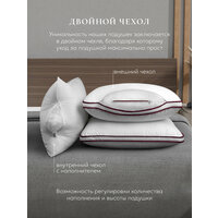 Наполнитель подушки - искусственный пух FossFill 3000 Lux, экологически чистое гипоаллергенное волокно, устойчивое к влажности, в нем не накапливается пыль и не живет пылевой клещ. Искусственный пух FossFill обладает пышностью, мягкостью и имеет упругую пружинистую структуру.