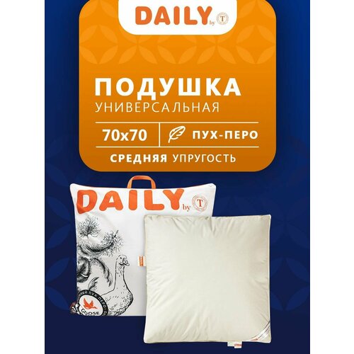 "Подушка 70х70 пух-перо коллекции «Дейли» компании Togas имеет наполнитель первой категории 80% уральский гусиный пух, 20% перо среднего размера, плотной массой 1900 г и чехол из 100% хлопка.