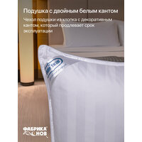 Подушка из премиальной коллекции «Белый Лебедь» была разработана высококвалифицированными технологами компании «Фабрика Снов» с учетом пожеланий и потребностей наших клиентов. Подушка подходит для сна на боку, животе, спине и имеет много преимуществ: чехол из страйп сатина – 100% хлопка: гипоаллергенный натуральный материал, который обладает хорошей воздухопроницаемостью и гигроскопичностью, а также шикарно выглядит; съемный чехол – облегчает уход за подушкой; наполнитель – первичное волокно высшего сорта: уникальный наполнитель, по своим нежности и мягкости не уступающий натуральному лебяжьему пуху, а также имеющий такие свойства, как гипоаллергенность и антибактериальность; регулируемая высота и плотность подушки – молния на ядре позволяет убирать и добавлять наполнитель для достижения желаемой высоты и упругости, нужно просто вынуть часть наполнителя, а оставшийся равномерно распределите по периметру подушки.
