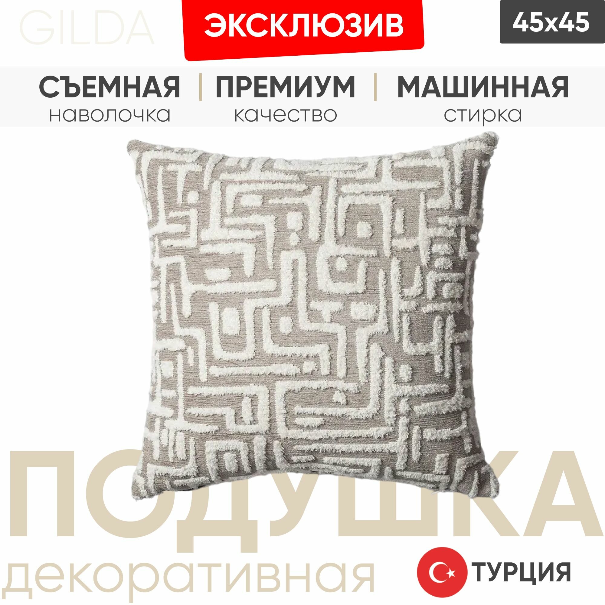 Подушка декоративная на диван Lunaretta 45х45 GILDA бежевая: сравнение цен, характеристики, фото, актуальное наличие и цены.