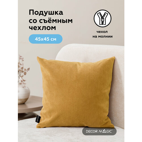 Подушка декоративная 45х45 см ULTRA MUSTARD с молнией, велюр