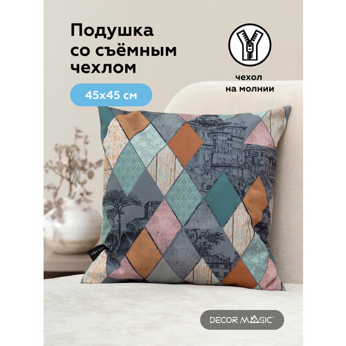 Декоративная подушка DECOR MAGIC со съемным чехлом размером 45х45 см на молнии изготовлена из безопасного гипоаллергенного материала. Внутреннее наполнение - вспененное 100% полиэфирное волокно. В комплектацию входит: съемный декоративный чехол и внутренняя подушка. Декоративная подушка с чехлом на молнии выглядит эстетично, т. к. внутренняя подушка не сбивается и не вылезает. А также это еще и очень удобно, потому что чехол можно просто снять и постирать, выбрав деликатный режим на стиральной машине , температура не более 30 градусов, 600 оборотов. Температура глажения не более 110 С с изнаночной стороны. Подушки DÉCOR MAGIC сделают дизайн комнаты более ярким, индивидуальным и уютным, они незаменимы в поддержании единого стилевого образа. С нами быстро, легко, красиво! Внимание: Технологически допустимые отклонения от заявленного размера +/- 3%, согласно ГОСТ Р 51554-99. Цвет товара может не совпадать с представленным на фото в связи с индивидуальными настройками цветов монитора и его яркости, а так же цвет изделий в одном дизайне, может не совпадать из-за разности фактур.