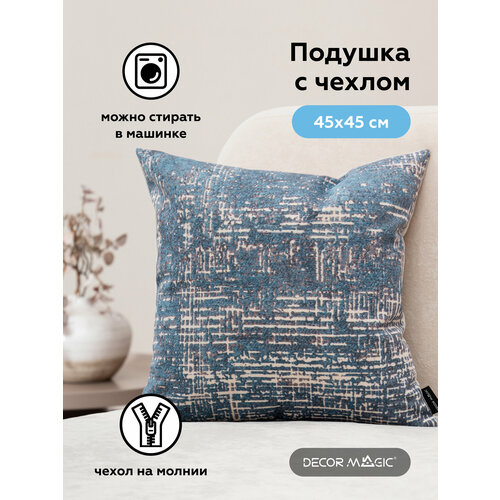 Декоративная подушка DECOR MAGIC со съемным чехлом размером 45х45 см на молнии изготовлена из безопасного гипоаллергенного материала. Внутреннее наполнение - вспененное 100% полиэфирное волокно. В комплектацию входит: съемный декоративный чехол и внутренняя подушка. Декоративная подушка с чехлом на молнии выглядит эстетично, т. к. внутренняя подушка не сбивается и не вылезает. А также это еще и очень удобно, потому что чехол можно просто снять и постирать, выбрав деликатный режим на стиральной машине , температура не более 30 градусов, 600 оборотов. Температура глажения не более 110 С с изнаночной стороны. Подушки DÉCOR MAGIC сделают дизайн комнаты более ярким, индивидуальным и уютным, они незаменимы в поддержании единого стилевого образа. С нами быстро, легко, красиво! Внимание: Технологически допустимые отклонения от заявленного размера +/- 3%, согласно ГОСТ Р 51554-99. Цвет товара может не совпадать с представленным на фото в связи с индивидуальными настройками цветов монитора и его яркости, а так же цвет изделий в одном дизайне, может не совпадать из-за разности фактур.