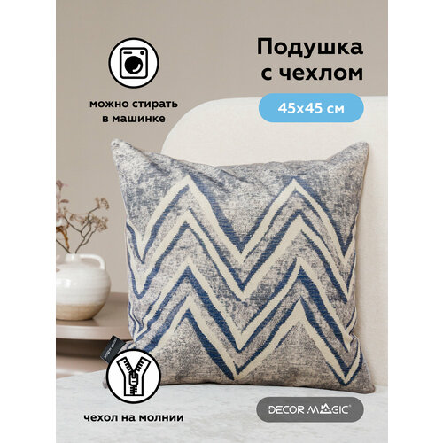 Декоративная подушка DECOR MAGIC со съемным чехлом размером 45х45 см на молнии изготовлена из безопасного гипоаллергенного материала. Внутреннее наполнение - вспененное 100% полиэфирное волокно. В комплектацию входит: съемный декоративный чехол и внутренняя подушка. Декоративная подушка с чехлом на молнии выглядит эстетично, т. к. внутренняя подушка не сбивается и не вылезает. А также это еще и очень удобно, потому что чехол можно просто снять и постирать, выбрав деликатный режим на стиральной машине , температура не более 30 градусов, 600 оборотов. Температура глажения не более 110 С с изнаночной стороны. Подушки DÉCOR MAGIC сделают дизайн комнаты более ярким, индивидуальным и уютным, они незаменимы в поддержании единого стилевого образа. С нами быстро, легко, красиво! Внимание: Технологически допустимые отклонения от заявленного размера +/- 3%, согласно ГОСТ Р 51554-99. Цвет товара может не совпадать с представленным на фото в связи с индивидуальными настройками цветов монитора и его яркости, а так же цвет изделий в одном дизайне, может не совпадать из-за разности фактур.