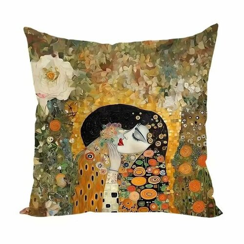 Велюровая декоративная подушка Девушка в саду Климт из коллекции “Картины Климт” - стильный и эстетичный элемент декора для дивана, кровати или кресла. Декоративная подушка украсит вашу комнату и преобразит пространство без особых финансовых затрат и усилий с вашей стороны. Насыщенные тона дают состояние расслабленности и покоя, отдыха, отлично впишутся в любой интерьер, а фрагмент картины Климт делают эти подушки по настоящему загадочными.