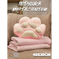Подушка декоративная для сна Обнимашка Сидушка на стул «Кошачья лапка» с пледом розовая: сравнение цен, характеристики, фото, актуальное наличие и цены.