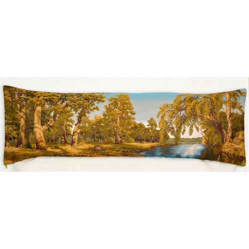 Наш ассортиент включает в себя большой выбор декоративный подушек из гобеленовой ткани в разных размерах, в том числе дизайн "Прохлада" с изображением пейзажа у реки