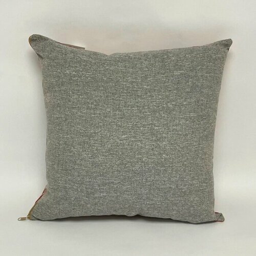 Красивый практичный материал - гобелен, легко стирается, не выгорает и не деформируется. Чехол застегивается на молнию вшитую в нижнюю сторону изделия. Задняя часть наволочки сделана из однотонной жаккардовой ткани светло-серого или бежевого оттенка.