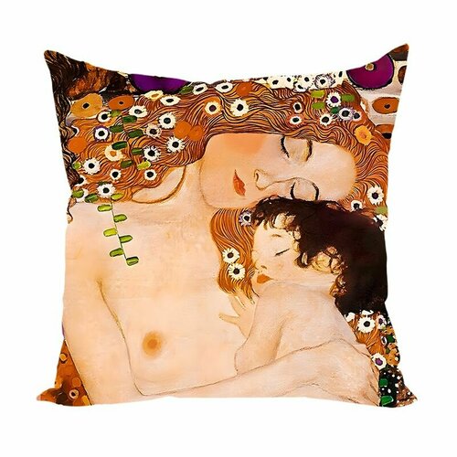 Велюровая декоративная подушка Мать и дитя Климт Климт из коллекции “Картины Климт” - стильный и эстетичный элемент декора для дивана, кровати или кресла. Декоративная подушка украсит вашу комнату и преобразит пространство без особых финансовых затрат и усилий с вашей стороны. Насыщенные тона дают состояние расслабленности и покоя, отдыха, отлично впишутся в любой интерьер, а фрагмент картины Климт делают эти подушки по настоящему загадочными.