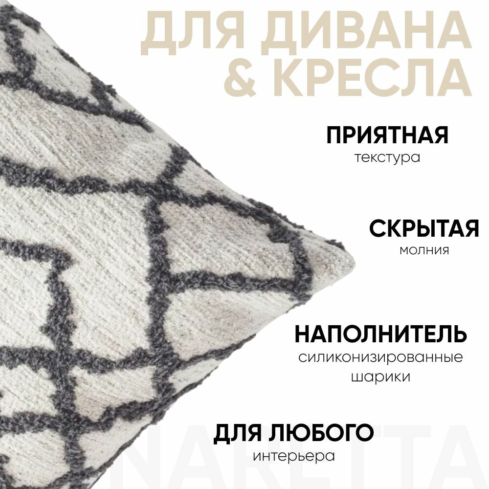 1. Премиум качество: фабричное производство в Турции. 2. Съемный чехол на скрытой молнии: молния не портит внешний вид. 3. Сохраняет форму: плотная, качественная набивка интерьерной подушки держит форму даже в углах подушки. Углы не заминаются. 4. Современный наполнитель: cиликонизированные шарики (синтешар): не комкуется и держит форму. Делает подушку пушистой и в то же время поддерживающей. 5. Можно стирать в стиральной машине.