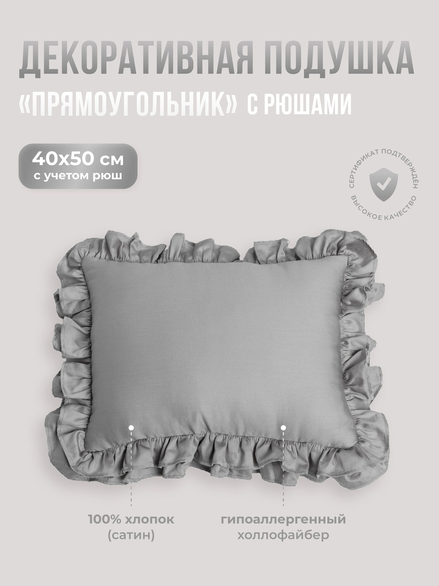 Подушка декоративная «Прямоугольник» с рюшами Childrens-Textiles, 40*50см, цвет: серый: сравнение цен, характеристики, фото, актуальное наличие и цены.