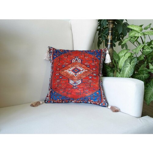 Размер подушки: 40х40 см. Наполнитель подушки - синтепух (350 гр.). Чехол подушки велюровый декоративной съёмный, застегивается на молнию, с лицевой стороны ткань велюр, состав ткани: полиэстер 80%, хлопок 20%, вторая сторона наволочки выполнена из натуральной ткани: хлопок 100%. Изделие отличаются хорошей прочностью и износостойкостью, гипоаллергенны и полностью безопасны для здоровья, смогут прослужить вам долгие годы. Цвет подушки красно - синий