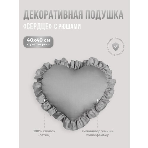 Купить Подушка декоративная «Сердце» с рюшами, Childrens-Textiles , 40*40 см, цвет: серый с доставкой по всей России. Подушка декоративная «Сердце» с рюшами, Childrens-Textiles , 40*40 см, цвет: серый: сравнение цен, характеристики, фото, актуальное наличие и цены.