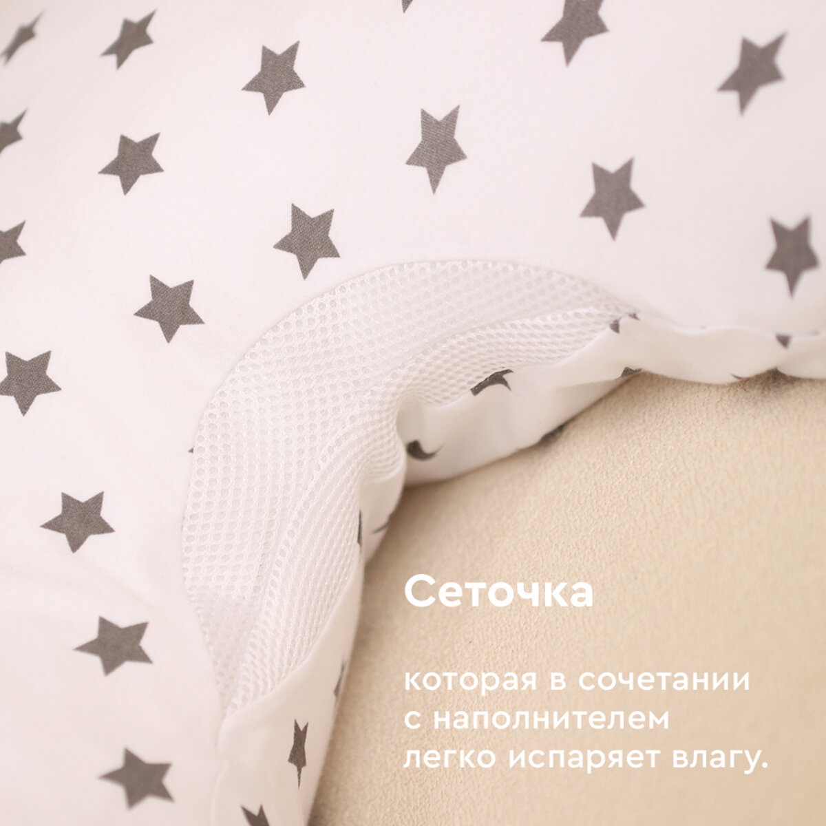 - Верхний чехол имеет сеточку, которая в сочетании с наполнителем легко испаряет влагу