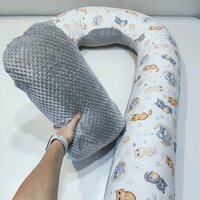Подушка для беременных и не только! - Ткань наперника- 100% хлопок. - Ткань наволочки- 100% хлопок- сатин + гипоаллергенный плюш. - Наполнитель - гипоаллергенный холлофайбер LUXE, это самый лучший и самый дорогой наполнитель. - Ластовица в изголовье предотвращает натирание швом и увеличивает срок службы подушки. Подушка U формы, чехол на молнии. В напернике тоже молния для того, чтобы вы могли регулировать наполнитель на свой вкус. В комплект входит: 1. Подушка: наперник с наполнителем; 2. Наволочка с молнией; 3. Сумка для хранения и переноски. 4. Рекомендации по уходу.