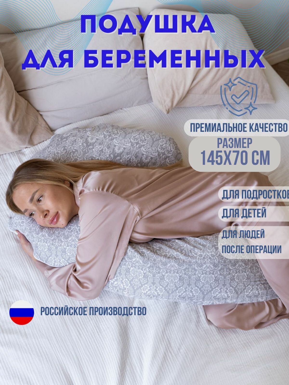 Купить Подушка для беременных и кормящих,145×70 см, форма подкова J с доставкой по всей России.