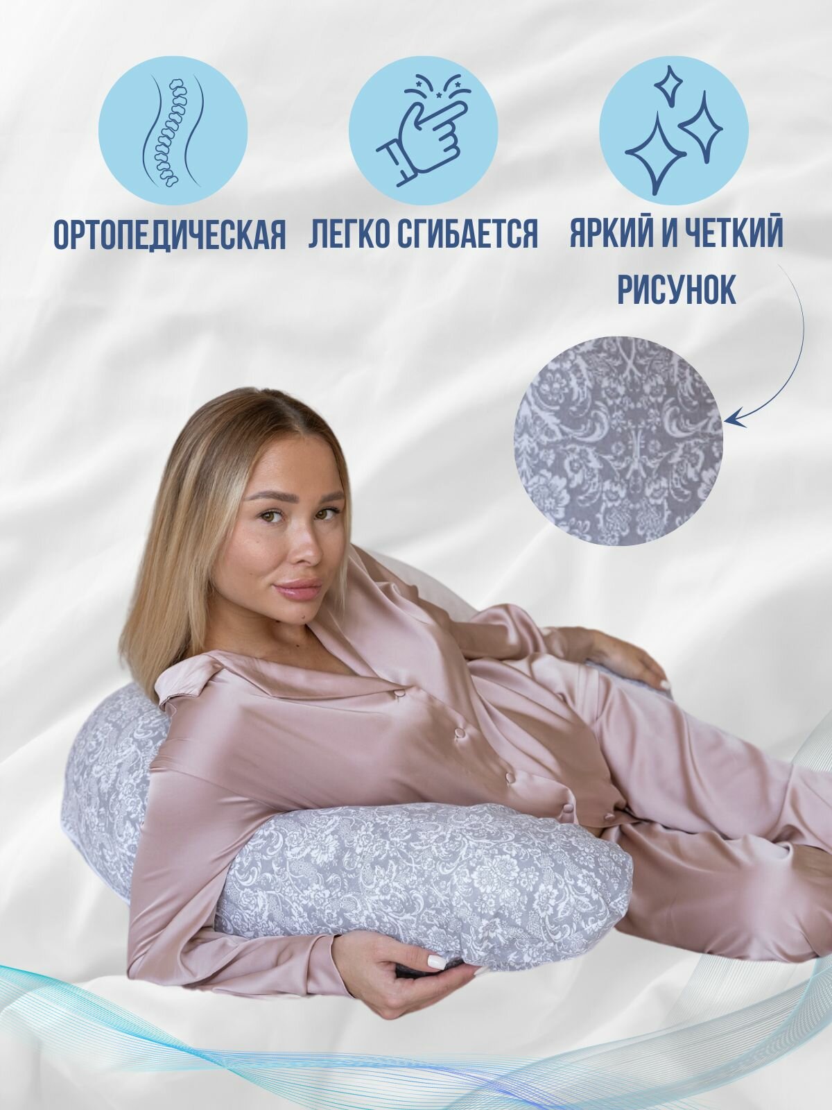 Подушка для беременных и кормящих,145×70 см, форма подкова J