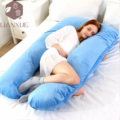 U-образный дизайн подушки поддерживает талию и шею, обеспечивая комфорт и ослабляя давление во время беременности.