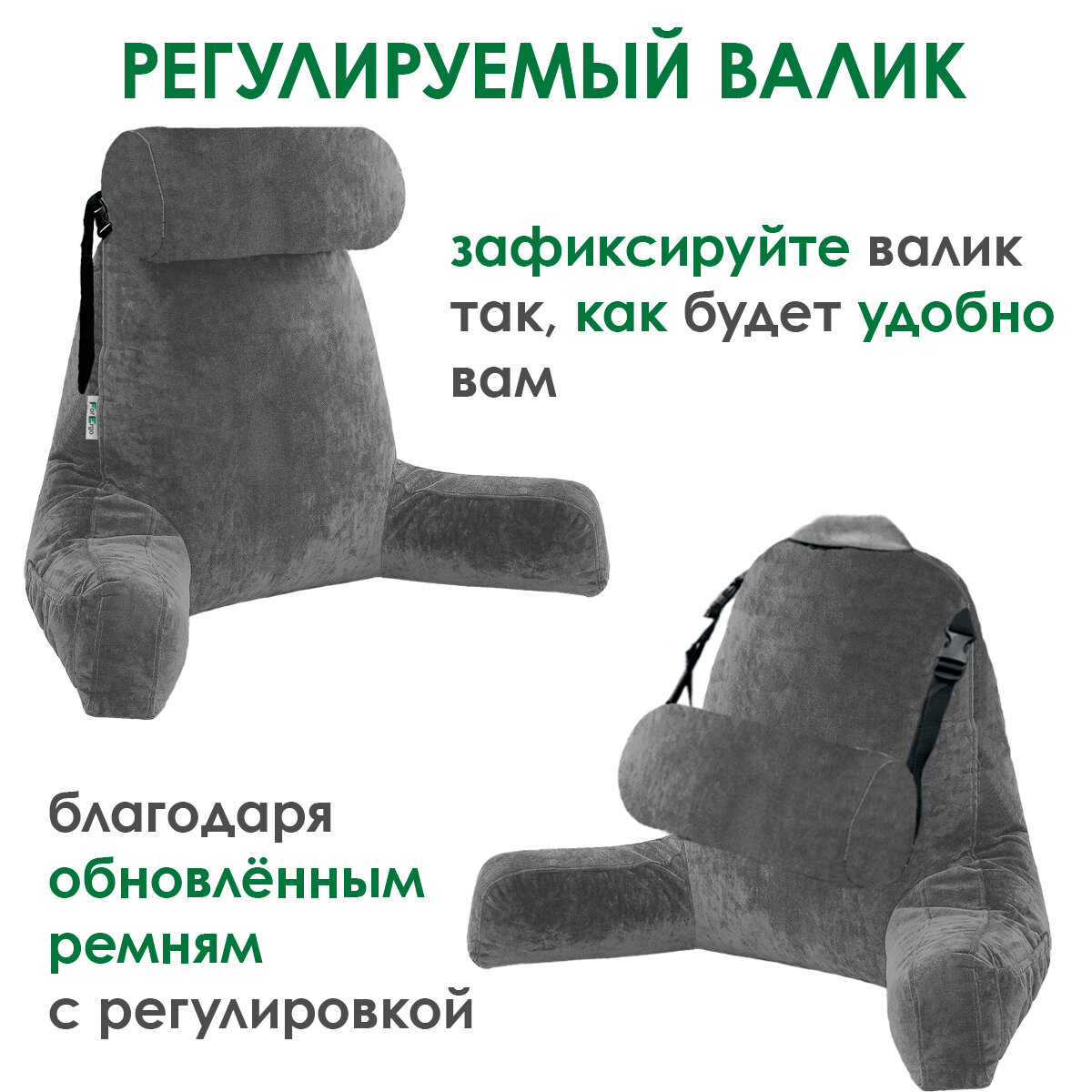 Правильная поддержка спины и шеи, которую обеспечивает подушка для чтения, помогает равномерно распределить нагрузку на позвоночник, снять усталость и боли. Подлокотники обеспечивают дополнительный комфорт, а боковой кармашек позволяет организованно хранить пульт, книгу, очки или игровой джойстик.