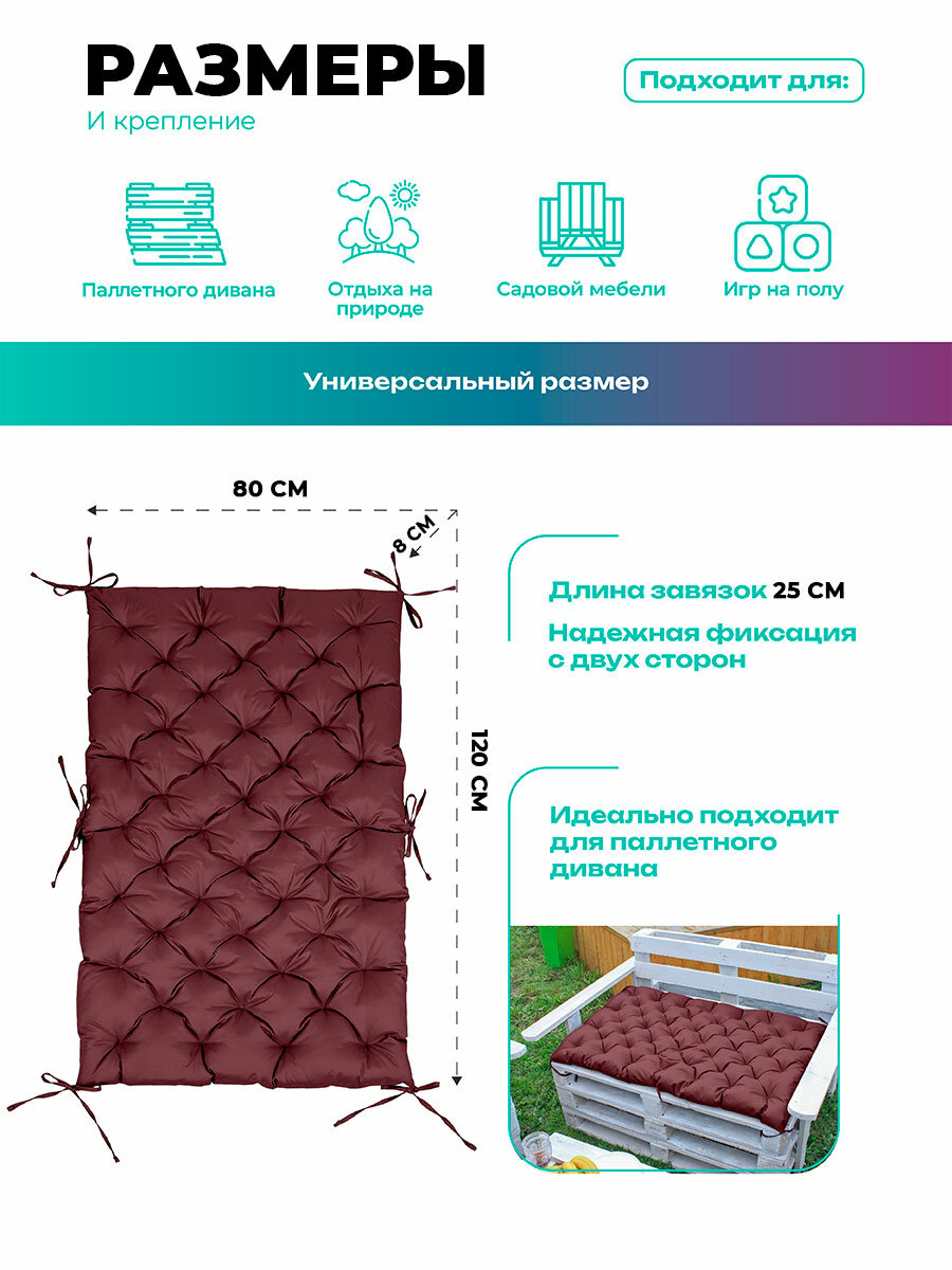Подушка для мебели из паллет Bio-Line, 80 x 120 cм, матрас для садовой мебели, влагостойкий, с завязками, бордо: сравнение цен, характеристики, фото, актуальное наличие и цены.