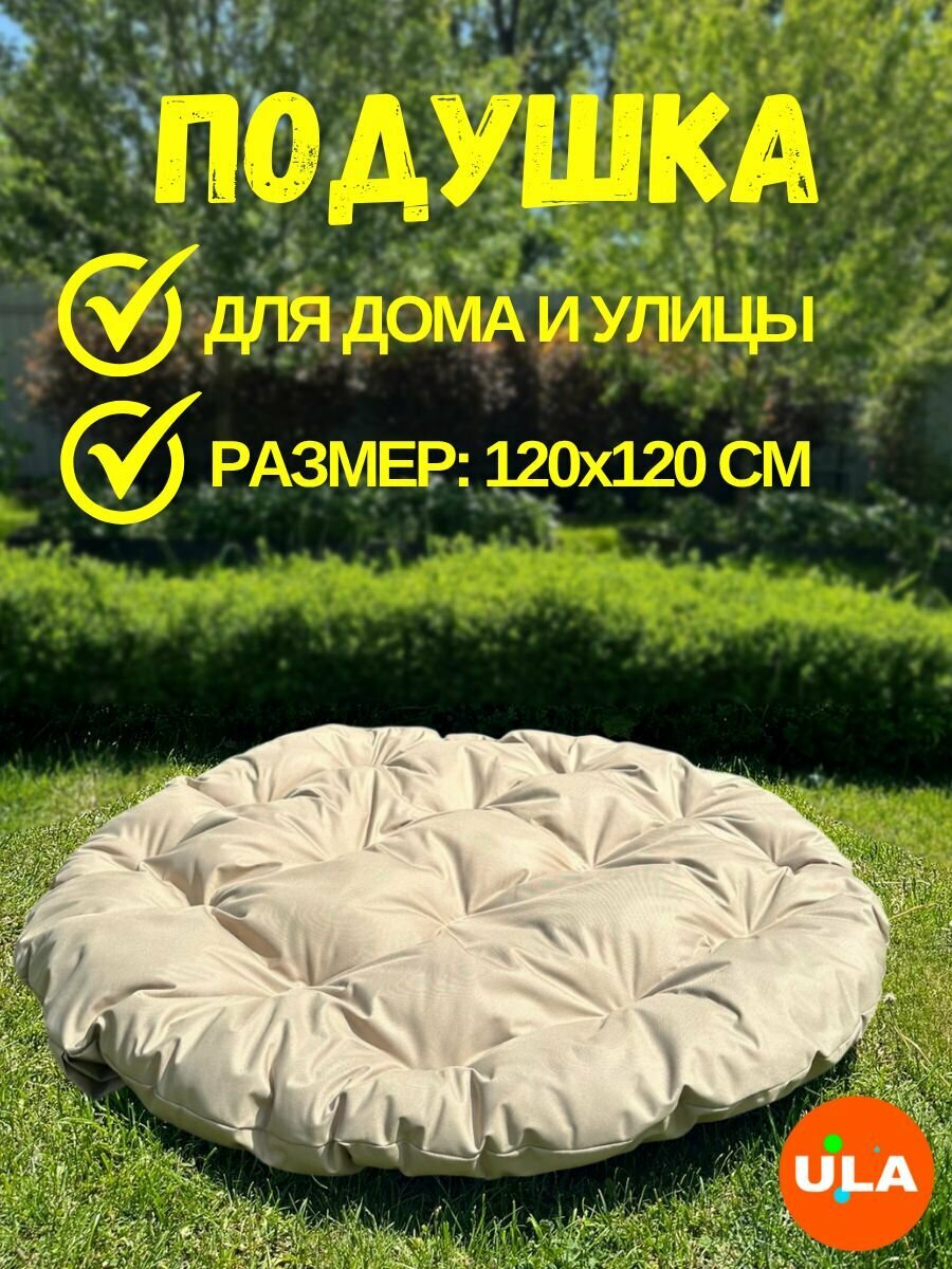 Мягкая подушка серии ULA Производство Россия! Цельная подушка выполнена из специальной ткани "Оксфорд" с мягким наполнителем. В качестве наполнителя, в отличии от аналогов, не используются гигроскопичные отходы текстильного производства. Заводское изготовление. - диаметр "подушки": 120 х 120 см - цвет бежевый Можно использовать в закрытых и открытых помещениях, на улице и дома. Для детских качелей "Гнездо", Для животных, Для кресла, Для подвесного кресла, Для садового кресла.