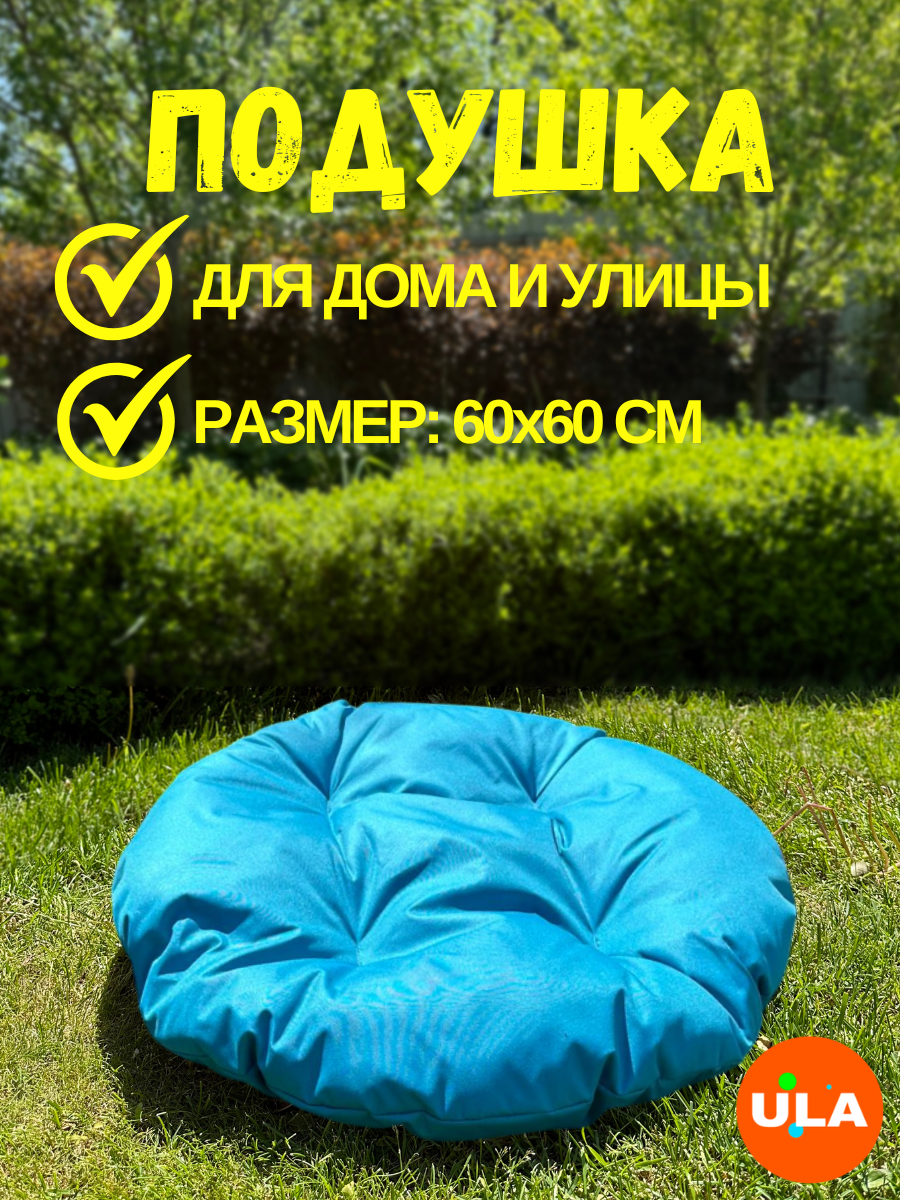 Мягкая подушка серии ULA Производство Россия! Цельная подушка выполнена из специальной ткани "Оксфорд" с мягким наполнителем. В качестве наполнителя, в отличии от аналогов, не используются гигроскопичные отходы текстильного производства. Заводское изготовление. - диаметр "подушки": 60 х 60 см - цвет бирюзовый Можно использовать в закрытых и открытых помещениях, на улице и дома. Для детских качелей "Гнездо", Для животных, Для кресла, Для подвесного кресла, Для садового кресла.