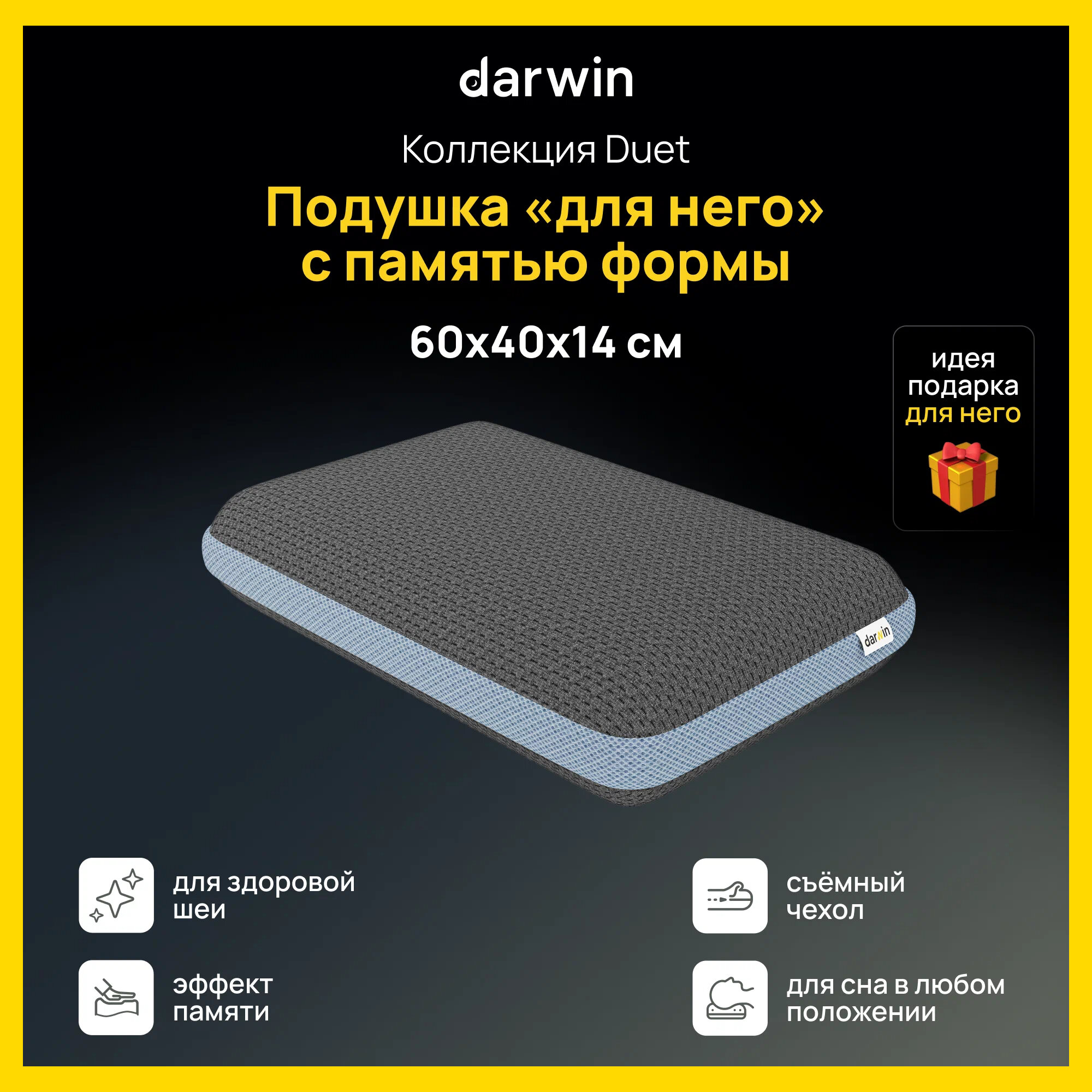 Ортопедическая подушка darwin «Для него», съемный чехол, гипоаллергенная, эффект памяти, 40×60 см: сравнение цен, характеристики, фото, актуальное наличие и цены.