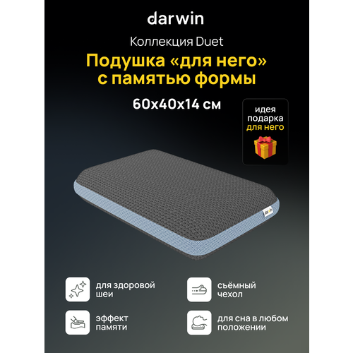 Подушка для сна darwin «для него» ортопедическая c эффектом памяти в подарочной упаковке, 40х60 см, высота 14 см: сравнение цен, характеристики, фото, актуальное наличие и цены.
