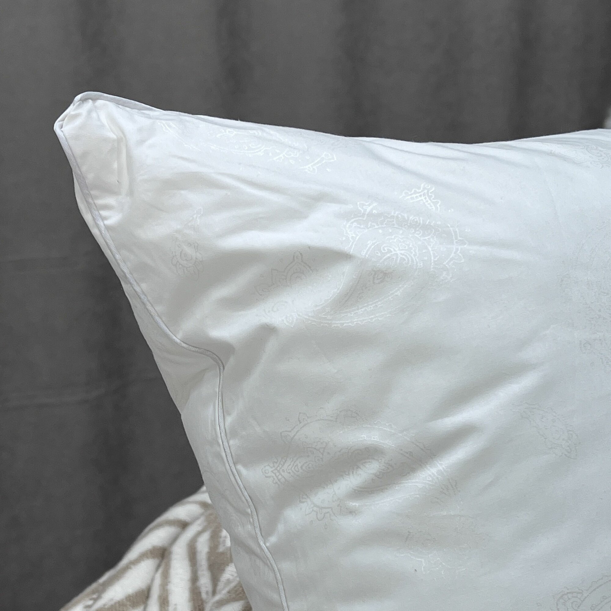 Подушка премиального качества от фирмы DonCotton с наполнителем "Искусственный лебяжий пух". Наполнитель очень мягкий воздушный по ощущениям как натуральный пух, но при этом не вызывает аллергии. Выдерживает стирки, очень качественный. Используется ткань 100% хлопок - тик. Ткань плотная, долговечная (дышит). Подушка имеет аккуратную окантовку.