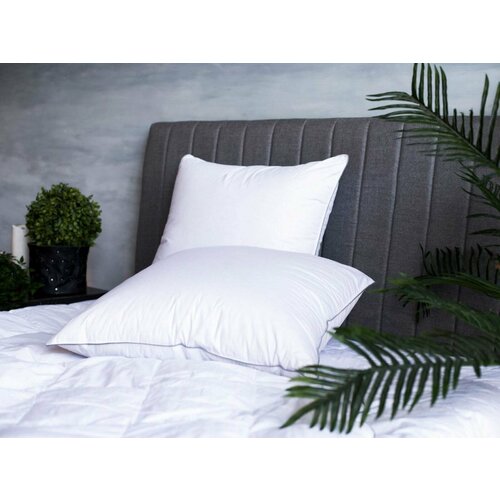 Подушка German Grass пуховая Gray Familie Down подходит для людей, предпочитающих среднюю степень поддержки.
