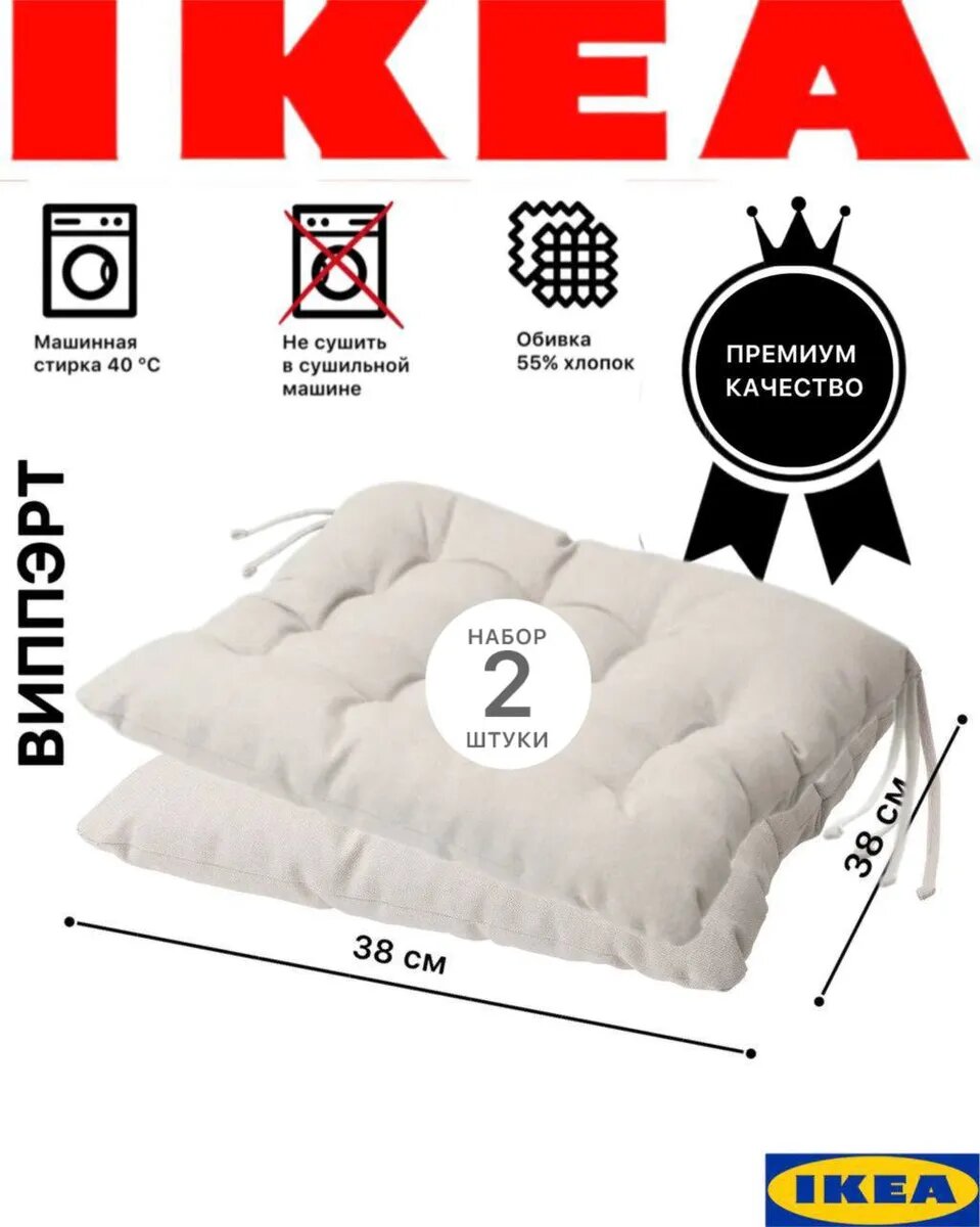 Подушка Икеа Виппэрт на стул со спинкой с сиденьем 40х40. Сидушка двусторонняя с завязками для кухни и комнаты, бежевая, хлопок, полиэстер, пенополиуретан, 38х38*6,5см: сравнение цен, характеристики, фото, актуальное наличие и цены.