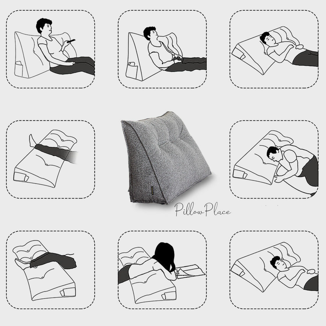 Подушка-изголовье для спины клиновидная, 80х25х50 см, вельвет, цвет серебристый: сравнение цен, характеристики, фото, актуальное наличие и цены.