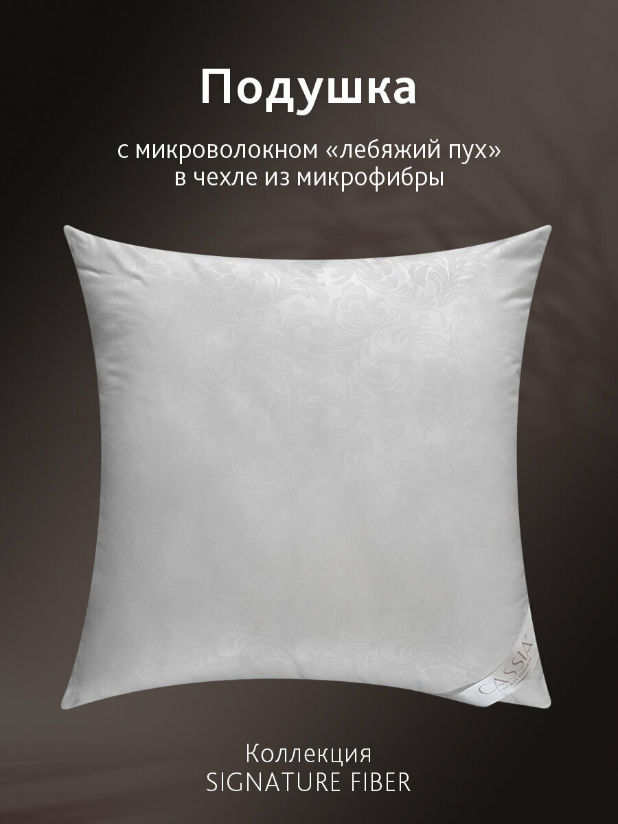 Подушка коллекции «SIGNATURE FIBER» в размере 70*70 имеет чехол из 100% микрофибры и наполнителя из 100% микроволокна «лебяжий пух». Искусственный лебяжий пух представляет собой тончайшее силиконизированное микроволокно, которое обладает всеми свойствами натурального пуха и является прочным и износостойким. Изделия из лебяжьего пуха гипоаллергенные и не имеют посторонних запахов. Такой наполнитель подходит людям с чувствительной и тонкой кожей. Изделия квадратной формы под шею из лебяжьего пуха гипоаллергенны и обладают антибактериальным эффектом. Ткань чехла из бархатистой микрофибры очень плотная и при этом нежная и приятная на ощупь. Пушистая подушка на кровать легко сжимается, принимая форму головы, быстро восстанавливает объем и обладает ортопедическим эффектом. Модель подойдет любителям спать на боку, спине или животе. Низкий уровень жёсткости позволит человеку погрузиться в здоровый сон. Воздушная подушка из лебяжки легко впишется в интерьер спальни, гостиной и даже детской комнаты вашей квартиры, дома или дачи и пополнит коллекцию постельных принадлежностей. Подушку под голову можно преподнести как оригинальный подарок на любое событие от годовщины свадьбы до гендерных мужских и женских праздников 8 марта и 23 февраля. При уходе за изделиями рекомендуется машинная стирка в щадящем режиме не выше 30 градусов.