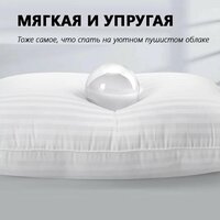 Комплект подушек Отельная 50х70см(набор состоит из 2-х подушек) Чехол: Сатин страйп (100% хлопок) полоса 1х1 Наполнитель: "лебяжий пух" - полиэфирное силиконизированное микроволокно Лебяжий пух – это искусственный материал на основе синтетического микроволокна. Основным его достоинством является то, что он практически идентично воспроизводит свойства натурального пуха, а по некоторым параметрам и превосходит его: подушка из лебяжьего пуха прекрасно держит форму, не скатывается в комки и очень легка по весу. Поскольку материал синтетичен, то перспектива появления клещей и плесени вашей подушке не грозит. Равно как и возникновение аллергии, чего не скажешь о естественном пухе.