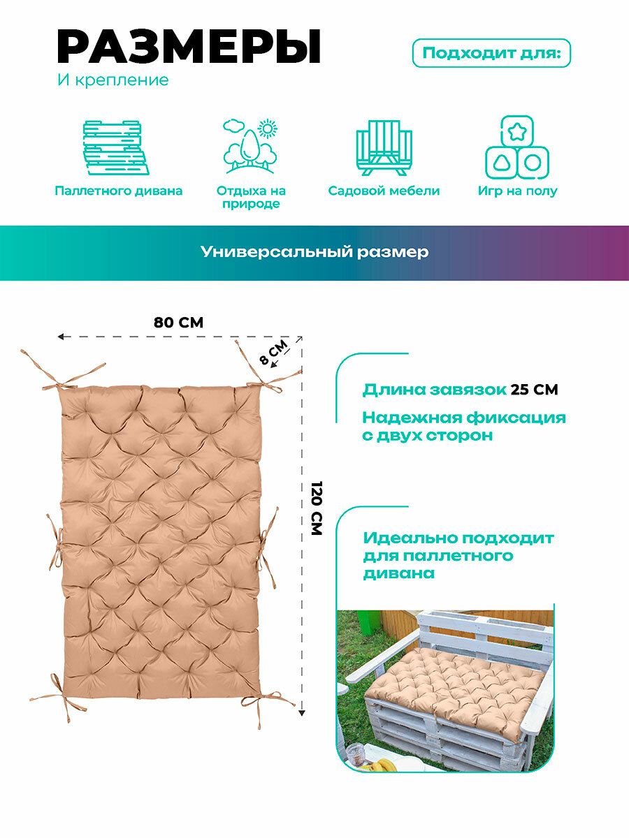 Подушка-матрас для мебели и поддонов Bio-line 80*120см, водонепроницаемый, на завязках, бежевый: сравнение цен, характеристики, фото, актуальное наличие и цены.