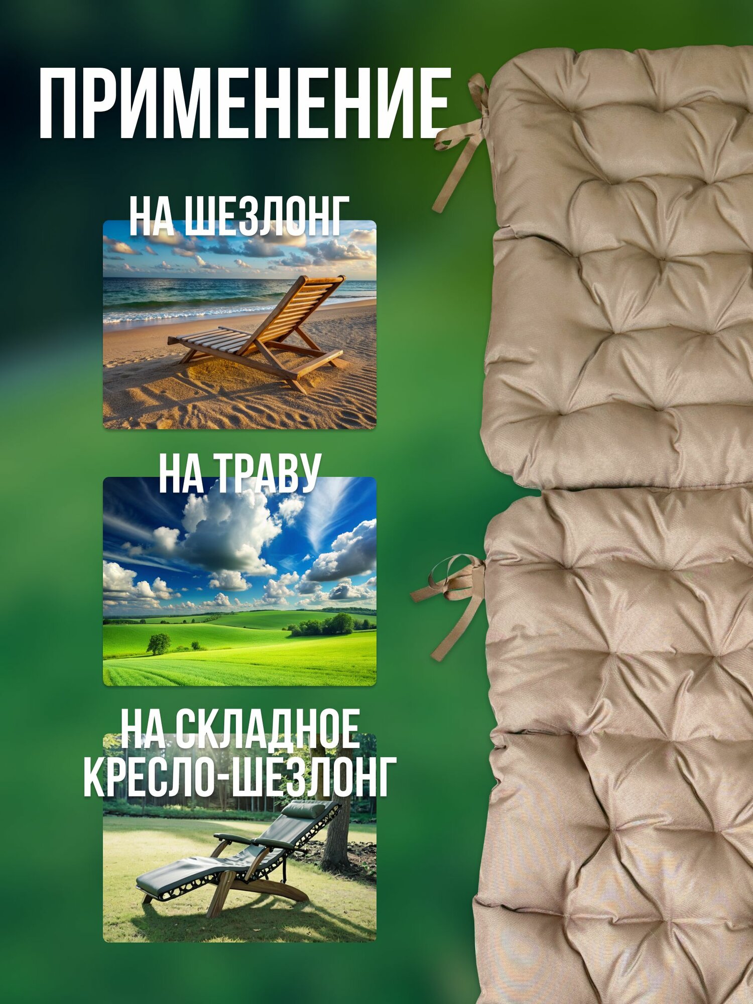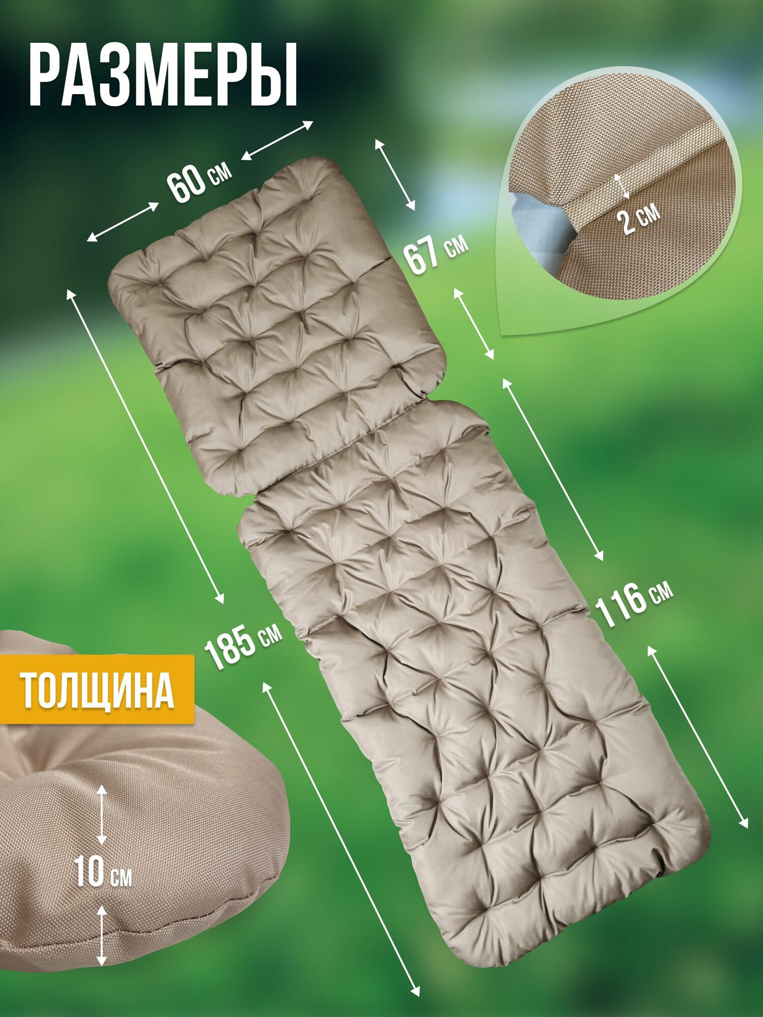 Подушка — матрас для шезлонга 185Х60 см двусторонний бежевый: сравнение цен, характеристики, фото, актуальное наличие и цены.