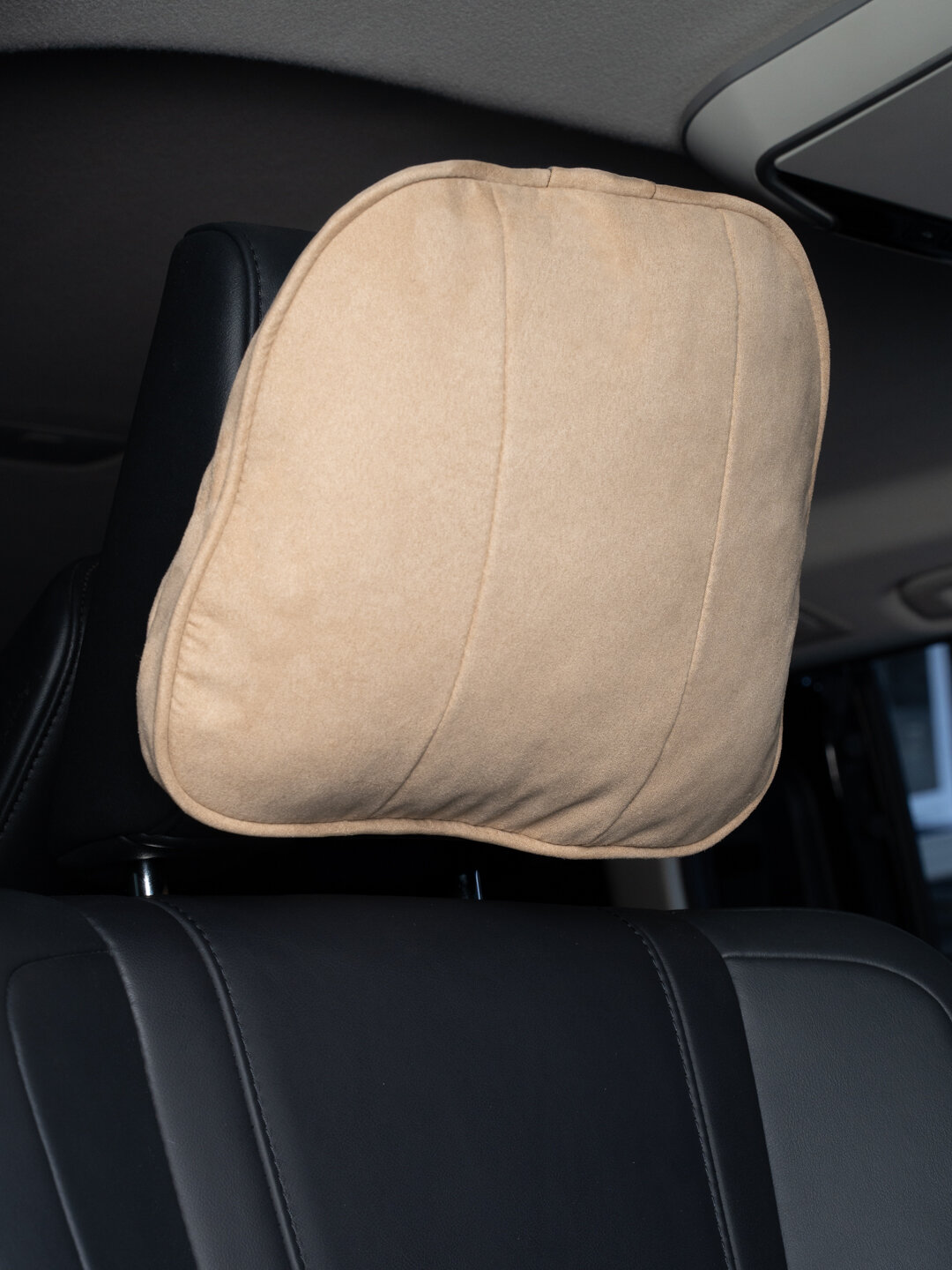 Подушка на подголовник автокресла бежевая. Универсальный аксессуар для автокресел любого размера и марки автомобиля. Подушка выполнена из замши и имеет систему фиксации на липучках, что позволяет легко регулировать ее высоту и уровень комфорта.
