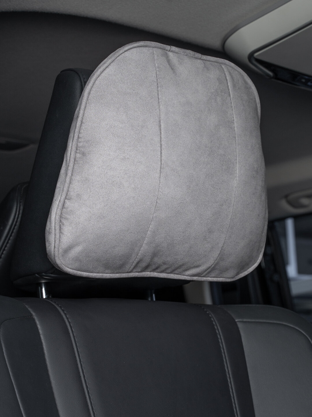 Подушка на подголовник автокресла серая. Универсальный аксессуар для автокресел любого размера и марки автомобиля. Подушка выполнена из замши и имеет систему фиксации на липучках, что позволяет легко регулировать ее высоту и уровень комфорта.