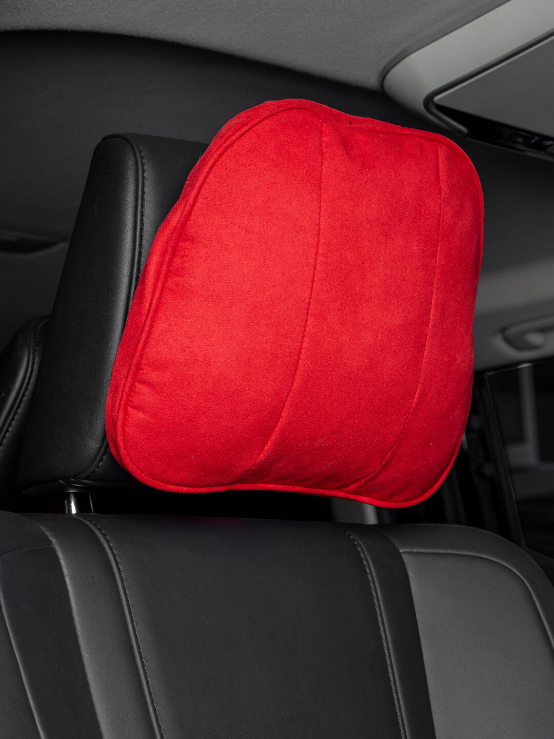 Подушка на подголовник автокресла красная. Универсальный аксессуар для автокресел любого размера и марки автомобиля. Подушка выполнена из замши и имеет систему фиксации на липучках, что позволяет легко регулировать ее высоту и уровень комфорта.
