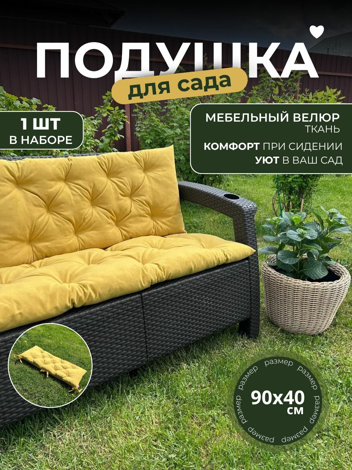 Подушка на скамью, качели, в беседку, на подоконник 90х40см велюр цвет желтый: сравнение цен, характеристики, фото, актуальное наличие и цены.
