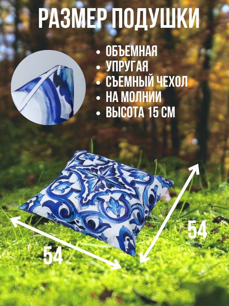 Размер 50x54 см идеально подходит для многих типов сидений, добавляя необходимый комфорт и стильный акцент. Возможно использование как в саду, так и в домашних условиях, что делает её универсальным решением. Эта подушка станет прекрасным спутником ваших летних пикников, дачных выездов или просто спокойного вечера на веранде.