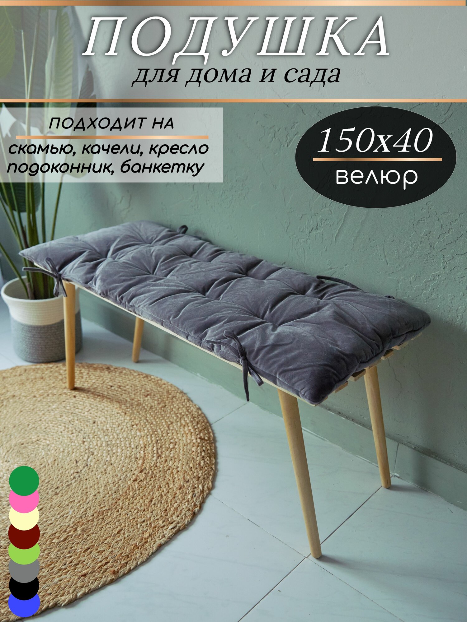 Подушка на скамью, подоконник 150х40 см, KLV_Shop велюр, цвет серый.: сравнение цен, характеристики, фото, актуальное наличие и цены.