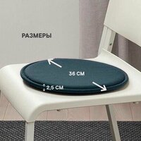 Подушка на стул IKEA SUNNEA суннеа 36x2.5 см черно-синий - идеальное дополнение для вашего интерьера. Эта декоративная подушка сочетает в себе комфорт и стиль, придавая вашему стулу изысканный вид. Изготовленная из высококачественных материалов, эта подушка обеспечит вам мягкую и удобную посадку. Круглую подушку можно положить на самые разные сиденья: стулья, табуреты и скамьи. Черно-синий цвет подушки SUNNEA добавит нотку элегантности и глубины вашему интерьеру. Он легко сочетается с различными цветовыми решениями, позволяя вам создать гармоничный образ. Бренд IKEA гарантирует качество и долговечность этой подушки. Она прослужит вам долгие годы, сохраняя свою форму и цвет. Инструкция по эксплуатации SUNNEA суннеа Машинная стирка 40°С. Стирать отдельно. Не отбеливать. Не сушить в стиральной машине. Гладить в низком температурном режиме. Не подвергать химической чистке. Сушить в расправленном виде. Размеры SUNNEA суннеа Диаметр: 36 см Толщина: 2.5 см