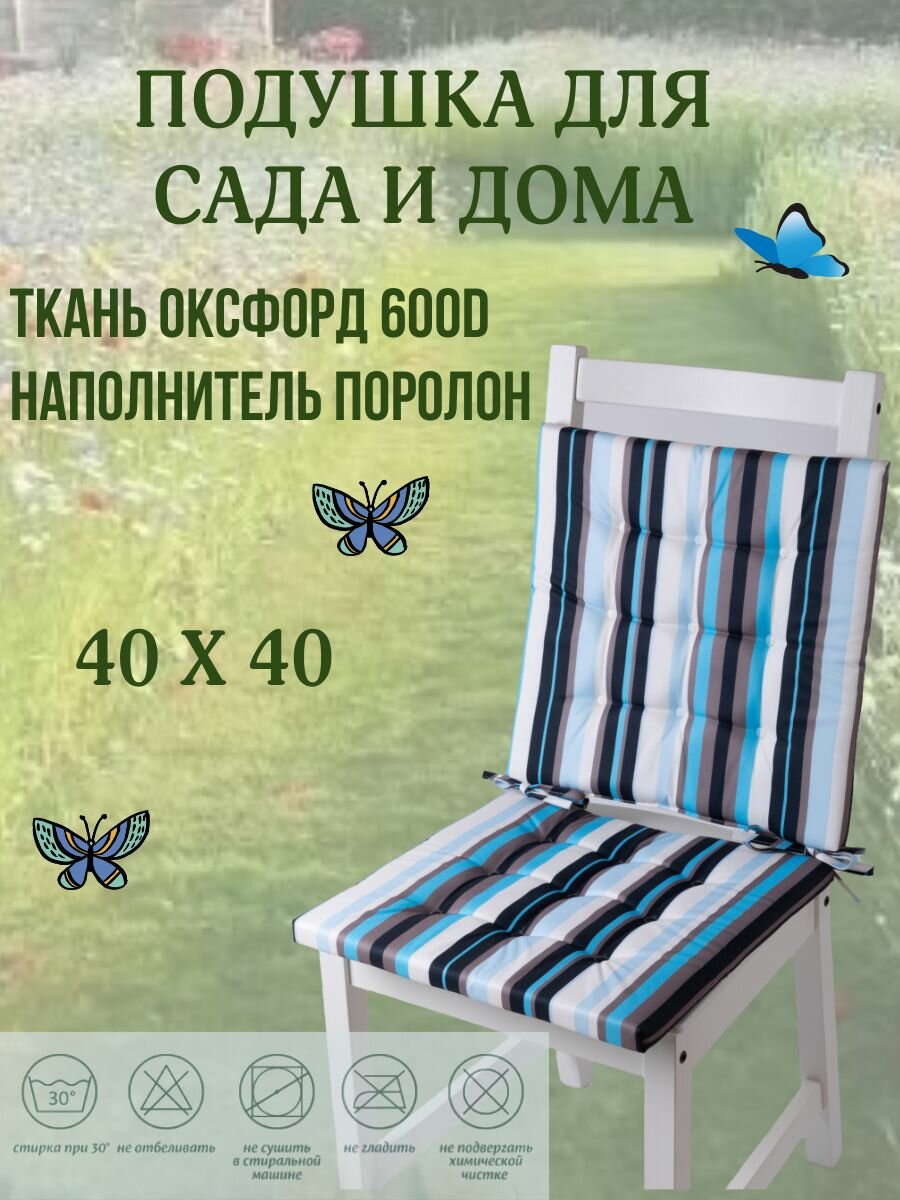 Подушка на стул 4ШТ. непромокаемая для дома сада улицы Полоска Морская волна 2 завязки 40х40: сравнение цен, характеристики, фото, актуальное наличие и цены.