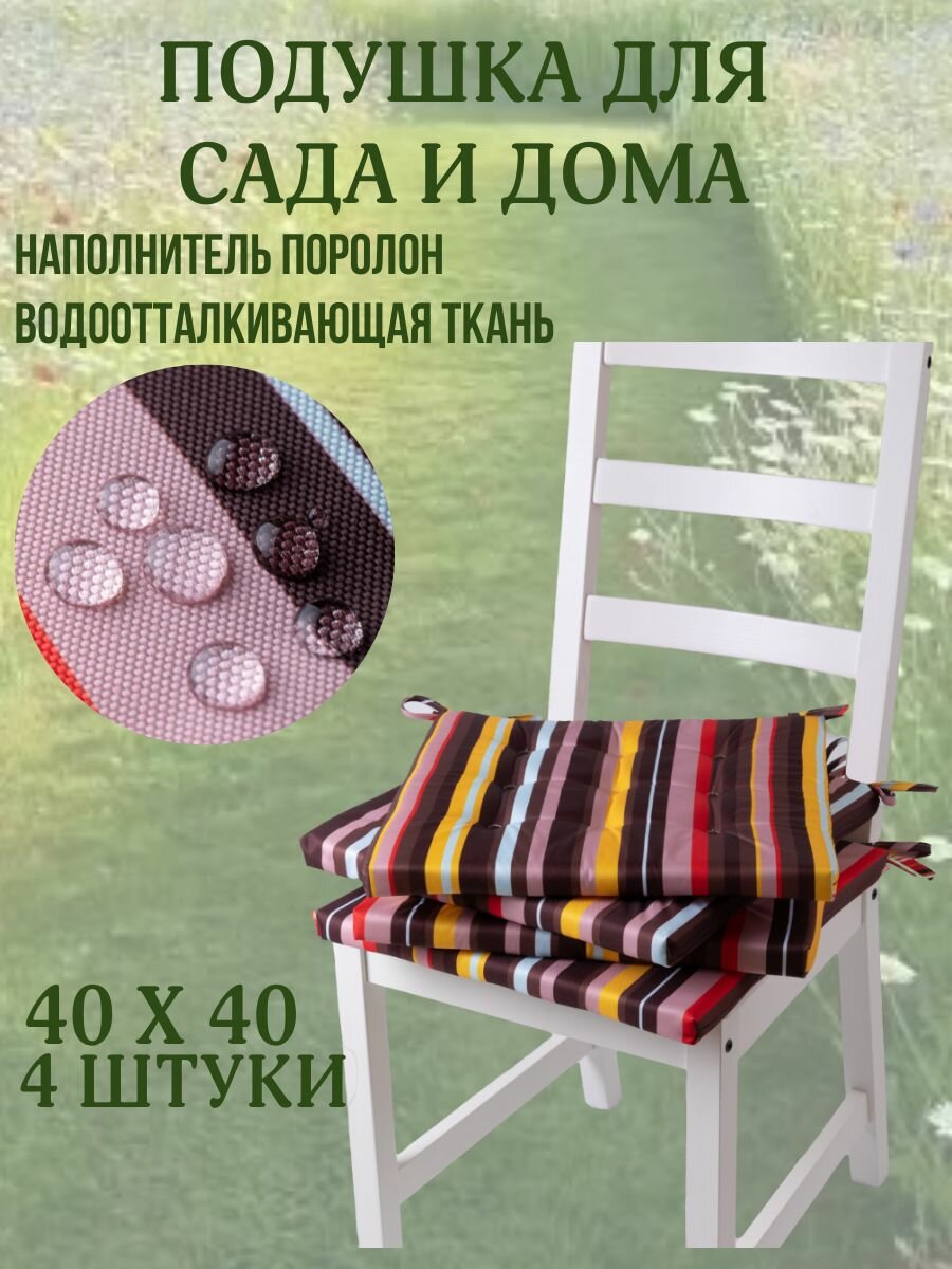 Подушка на стул 4ШТ. непромокаемая для дома сада улицы Полоска цвет Карамельный 2 завязки 40х40: сравнение цен, характеристики, фото, актуальное наличие и цены.